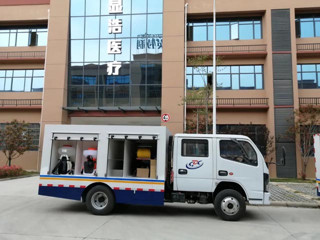 用于消殺室外環(huán)境的細菌,病毒,和蚊蠅等媒介昆蟲。車內(nèi)配置超低容量噴霧機、常量噴霧機等設(shè)備。可消毒處理面積:>500㎡可連續(xù)反復(fù)充裝;殺蟲處理面積:2500—100000㎡。