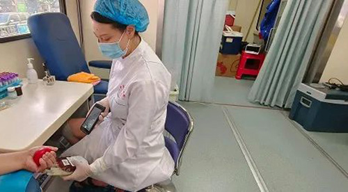 這個(gè)可以搖擺的稱(chēng)是采血稱(chēng),把血袋放在這個(gè)搖擺盤(pán)上面,當(dāng)獻(xiàn)血的血液流到采血袋里面。托盤(pán)就會(huì)按照設(shè)計(jì)好的角度頻率搖擺,把血液跟抗凝劑充分的混合,使血液在血袋里面不凝固。血袋血液達(dá)到設(shè)定量,搖擺稱(chēng)就會(huì)發(fā)音提醒。這樣醫(yī)護(hù)人員就可以及時(shí)處理,保障采血量的準(zhǔn)確度。血液的血袋及采血導(dǎo)管上貼上獻(xiàn)血條形碼,錄入血站管理中心的系統(tǒng)。這個(gè)條形碼,就是資料信息數(shù)據(jù),條形碼是唯一不會(huì)重復(fù)的??梢愿鶕?jù)這個(gè)碼進(jìn)行全過(guò)程的跟蹤。采血護(hù)士用來(lái)掃條形碼的儀器??梢話呙桎浫氆I(xiàn)血人員的各種信息,采血量、血袋編號(hào)、采血時(shí)間地點(diǎn),采血容量,核對(duì)了獻(xiàn)血表等信息的一致性。就跟身份證一樣。作用是將信息實(shí)時(shí)上傳到血站的信息系統(tǒng),方便血液的數(shù)據(jù)共享核查。獻(xiàn)血前還需要扎針,進(jìn)行血液初篩。血液初篩是必不可少的環(huán)節(jié),可以初步檢測(cè)所獻(xiàn)的血液是否符合要求,這也是確保血液安全必不可少的步驟。篩查血型、血紅蛋白、轉(zhuǎn)氨酶等項(xiàng)目。