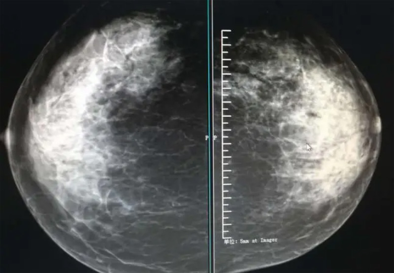 5類:高度懷疑惡性,臨床應(yīng)采取適當措施(幾乎肯定的惡性)。這一類病變有高度的惡性可能性。檢出惡性率的可能性大于等于95%。形態(tài)不規(guī)則星芒狀邊緣的高密度腫塊、段樣和線樣分布的細小線樣和分支狀鈣化、不規(guī)則星芒狀邊緣腫塊伴多形性鈣化均應(yīng)歸在這一類中。