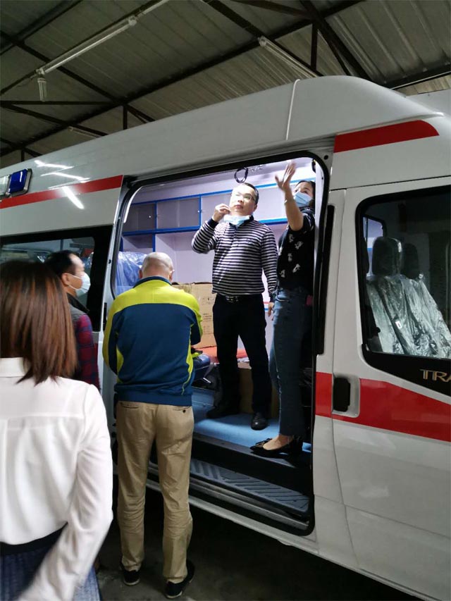 顯浩醫(yī)療救護(hù)車廠家委派專業(yè)人員對相關(guān)醫(yī)務(wù)人員進(jìn)行整車培訓(xùn),客戶對我們的服務(wù)表示滿意,相信我們以后會(huì)有更好的合作。救護(hù)車的順利交付,助力病人轉(zhuǎn)運(yùn)、醫(yī)療急救等工作。醫(yī)院把救護(hù)車車?yán)煤?,真正發(fā)揮醫(yī)療救護(hù)的作用。讓廣大人民群眾受益。全縣應(yīng)急救護(hù)能進(jìn)一步增強(qiáng)。救護(hù)車救護(hù)車外觀車輛,包括識別,醫(yī)療室系統(tǒng),電源系統(tǒng),與呼吸機(jī)可任選地,化驗(yàn)機(jī)器,ECG等設(shè)備,汽車內(nèi)部是設(shè)置輕便鋁合金擔(dān)架車、氧氣瓶、中隔墻醫(yī)藥柜等應(yīng)急管理醫(yī)療服務(wù)器械,為鄉(xiāng)鎮(zhèn)急救信息中心對危急重癥病人可以進(jìn)行有效救護(hù)、監(jiān)護(hù)和轉(zhuǎn)運(yùn)系統(tǒng)提供了周全保障。