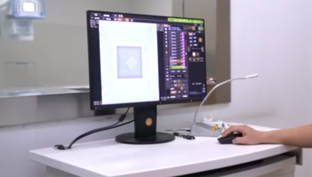 DR主要有X射線輻射源,機架攝影床,影像增強器,高壓發(fā)生器和計算機系統(tǒng)組成。首先檢查DR系統(tǒng)的整體外觀,標(biāo)有廠家信息,型號,編號參數(shù),生產(chǎn)日期清晰可認(rèn)的標(biāo)志??纯纯諝獗柔寗幽茉趺礄z定,首先打開視野燈。然后把探測器放到視野燈照射中心。調(diào)節(jié)視野窗值最大。調(diào)節(jié)探測器焦點到探測器1米的距離。最后打開探測器。接下來到控制室設(shè)置曝光條件進行曝光,更改千伏為70千伏。調(diào)節(jié)為10毫秒,按手柄進行曝光,保持條件不變再重復(fù)曝光兩次。然后再進去DR室讀取計量儀數(shù)據(jù)并記錄。讀取3次計數(shù)測量數(shù)值。并且記錄處理。這個就是空氣比釋動能測定過程。目前流行的計量儀都集成了輻射輸出的值和管電壓測量功能。輻射輸出的值和管電壓可以直接通過計量儀讀取數(shù)值。