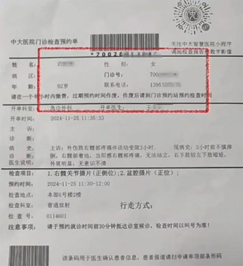 第二部分,有病人的姓名、年齡、聯(lián)系方式等信息。這些信息可以方便科室對病人的身份核實。