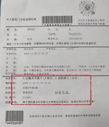 第三部分,也是最重要的部分,標識了檢查項目、預(yù)約時間、檢查地點、檢查科室、檢查號等信