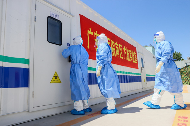 方艙實驗室外形似集裝箱貨柜,單個艙體占地面積約40平方米,它雖小,但功能齊全。提高核酸檢測能力,堅決守住來之不易的疫情防控成果方艙實驗室助力疫情防控的重要手段。疫情無情人有情,大范圍的核酸檢測,分秒必爭。檢測人員物資整理、核酸樣本接收排版、數(shù)據(jù)整理、結(jié)果錄入、報告審核,實驗室的檢測人員在距離病毒最近的地方,符合二級生物安全實驗室的要求,整體負(fù)壓,準(zhǔn)確嚴(yán)謹(jǐn)完成每個實驗步驟。方艙實驗室分為四大區(qū)域,包括試劑準(zhǔn)備、樣本處理、核酸擴增等核酸檢測必備工作區(qū),為配合核酸檢測任務(wù)安全有序完成,方艙實驗室運行期間,檢測量很大,確保準(zhǔn)確高效的檢測,檢測人員的工作時間很長,平均日工作時間約18個小時。方艙實驗室的啟動運行,緩解各個檢測系統(tǒng)的壓力,靈活作業(yè)的特點,爭做核酸檢測質(zhì)量的壓艙石,嚴(yán)格實驗室管理制度,高質(zhì)量科學(xué)檢測,必要時還可突破地域限制,疫情防控保障工作提供了高效有序的運轉(zhuǎn)。確保核酸檢測工作安全、及時、精準(zhǔn)、高效。