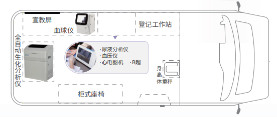 便捷、周全、高效的上門體檢服務(wù),智慧體檢車就能把健康醫(yī)療送到家門口,定制化可根據(jù)不同需求進行個性化定制改裝自動化數(shù)據(jù)自動采集,記錄,生成規(guī)范檢驗數(shù)據(jù)庫標準化國家公 衛(wèi)服務(wù)標準常規(guī)病例隨訪標準化操作流程智能化智 能健康管理系統(tǒng)智能風險評估醫(yī)學(xué)知識庫。血壓、血糖、B超、心電圖檢查。享受優(yōu)質(zhì)的體檢醫(yī)療服務(wù)。通過檢查后身體有問題就要早治療早預(yù)防。20多分鐘就可以完成體檢項目,省時省力。農(nóng)民得到了實惠,都花錢少了。體檢方便了。推動了公共衛(wèi)生服務(wù)的均等化。隨著醫(yī)療服務(wù)的不斷提高,體檢車就可以生化檢測,血液檢測,大大的節(jié)省了檢測報告時間。控制一些疾病。體檢車,可根據(jù)不同需求進行個性化定制改裝。數(shù)據(jù)自動采集、記錄,生成規(guī)范檢驗數(shù)據(jù)庫。并依據(jù)國家公衛(wèi)服務(wù)標準常規(guī)病例隨訪標準化操作流程,體檢車專用設(shè)備不受環(huán)境溫度的影響,隨開隨用,能適應(yīng)春、夏、秋、冬四季以及高寒、高原、炎熱等惡劣環(huán)境。