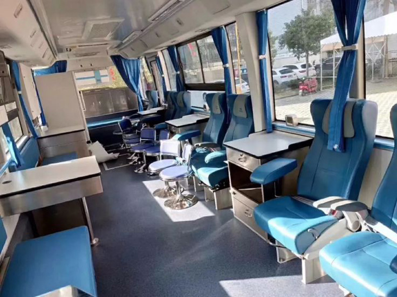 采血車使用前要進(jìn)行嚴(yán)格消毒殺菌環(huán)境嚴(yán)格按照無(wú)菌操作,扶手,桌椅,物品表面,操作臺(tái),采血秤車擦拭。里沒(méi)有細(xì)菌污染才能進(jìn)行采血。采血椅舒適,功能劃分高效有序,搭載完善的醫(yī)療衛(wèi)生設(shè)備,區(qū)域設(shè)置合理設(shè)備設(shè)施個(gè)性化定制更實(shí)用。提升硬件采血設(shè)施,提升采血服務(wù)水平。采血車整車長(zhǎng)11米,寬2.5米、高3.5米,設(shè)有登記接待、咨詢、初檢、采血、休息等功能區(qū),內(nèi)部寬敞,設(shè)計(jì)新穎、內(nèi)飾漂亮。高性能采血座椅,環(huán)境舒適,光線明亮、采血車設(shè)備齊全,采血秤、血壓計(jì)、儲(chǔ)血冰箱、熱合機(jī)、新型空氣消毒機(jī)、等配套設(shè)施齊全。